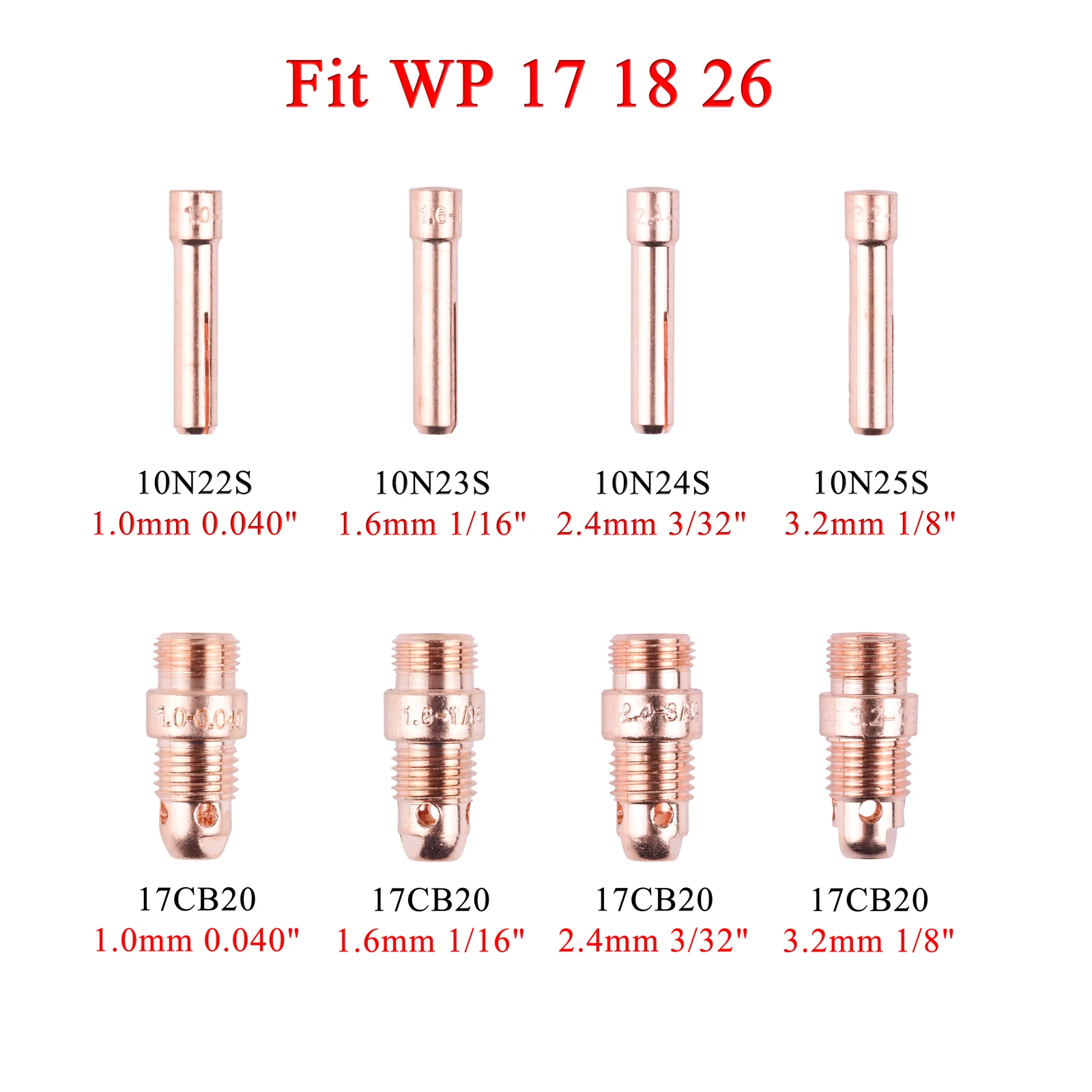 1,01,62,43,2 мм TIG цанги и цанговые тела 10N22S 10N23S 10N24S 10N25S 17CB20 0,040 "116" 332 "18" для аргонодуговой сварки WP17 18 26 фонарь