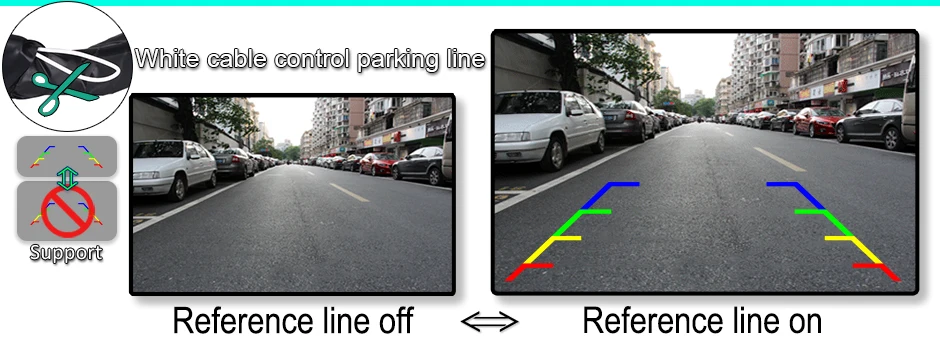• Не требуются интерфейсы CANBUS или OBD, встроенный модуль реверсивных треков камеры, просто подключите питание.• Не поддерживает управление рулем.• Автоматическая Настройка дорожки в соответствии с движущимся положением и скоростью кузова автомобиля и углом, поможет вам облегчить парковку.• Объектив «рыбий глаз» с углом обзора 170 °