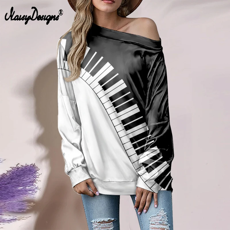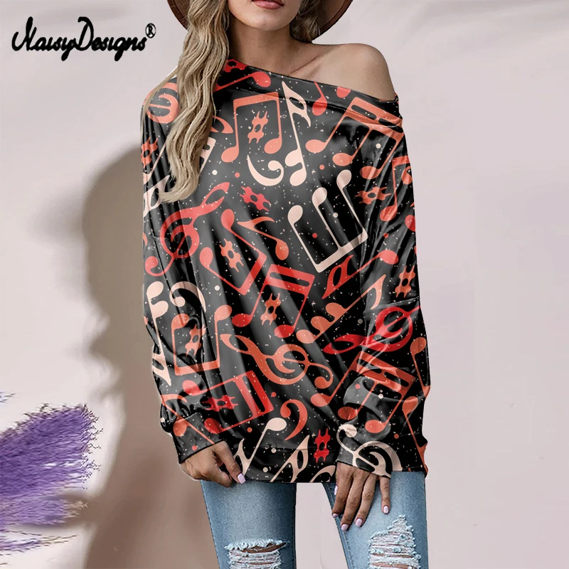 NoisydesignsНовинка; Женская блузка большого размера на заказ с принтом; Женская Повседневная Свободная рубашка с длинными рукавами и открытыми плечами; Топы; Лидер продаж; Прямая поставка