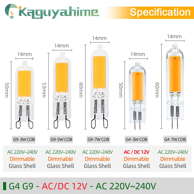 Kaguyahime 10 шт.лот светодиодная лампочка G9 G4 E14 диммируемая лампа ACDC 12 В 220 В 3 Вт 5 Вт 7 Вт 9 Вт Высокая яркость ЛАМПОЧКА G4 G9 Светодиодная люстра точечного светильника