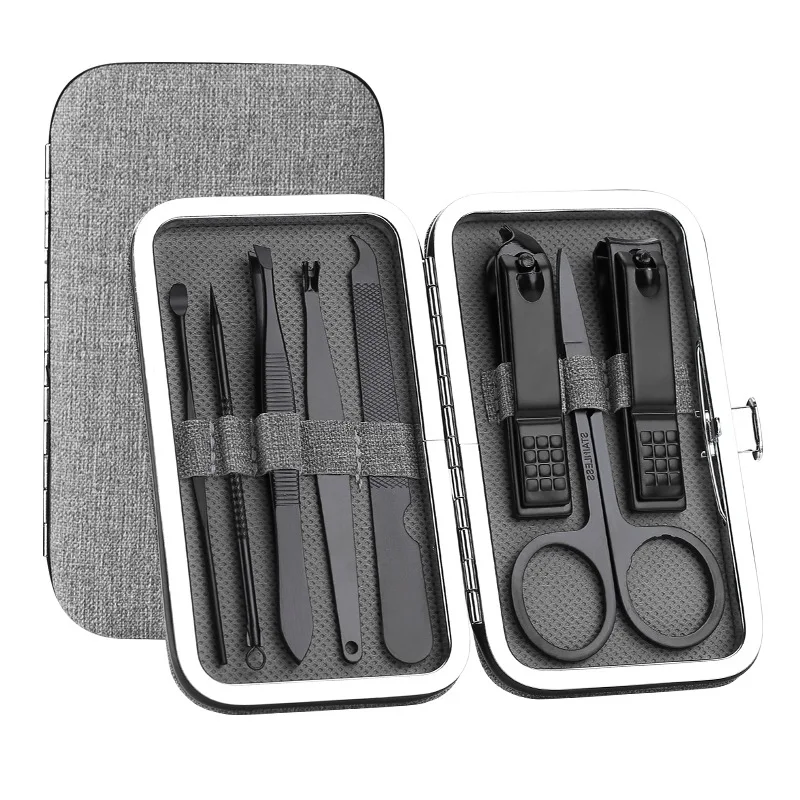 Набор машинок для маникюра TSLM2, набор из 8 предметов из нержавеющей стали, чёрный розовый серый, с футляром, профессиональные наборы для маникюра