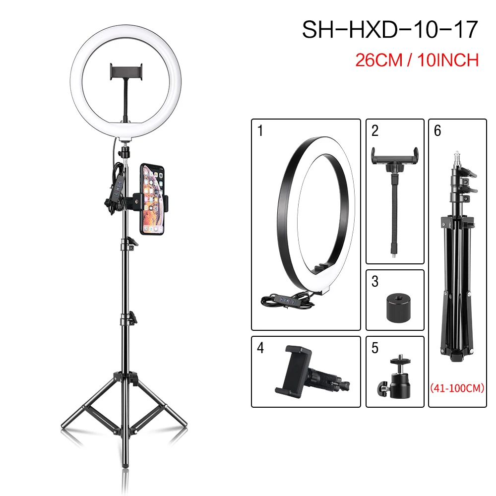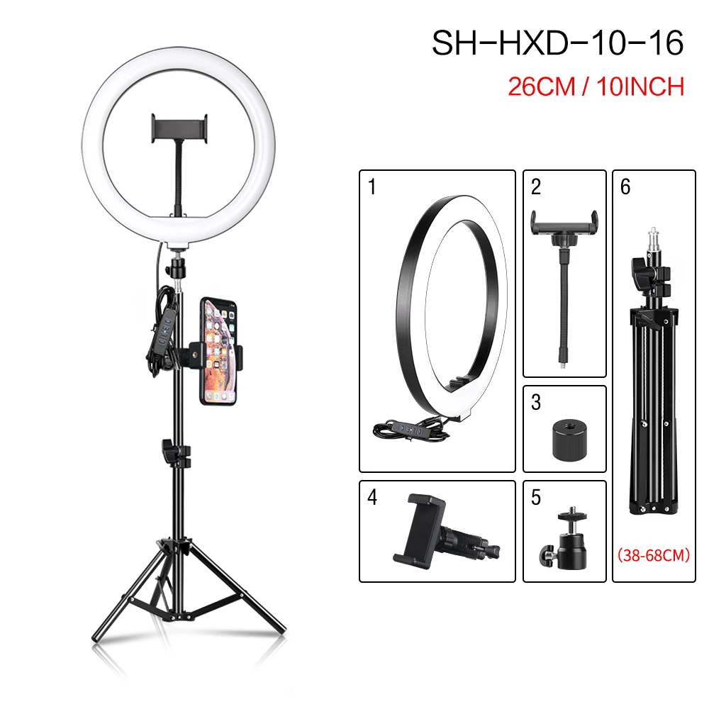 Светодиодное освещение SH 10 дюймов26 см со штативом и Usb-зарядкой для селфи