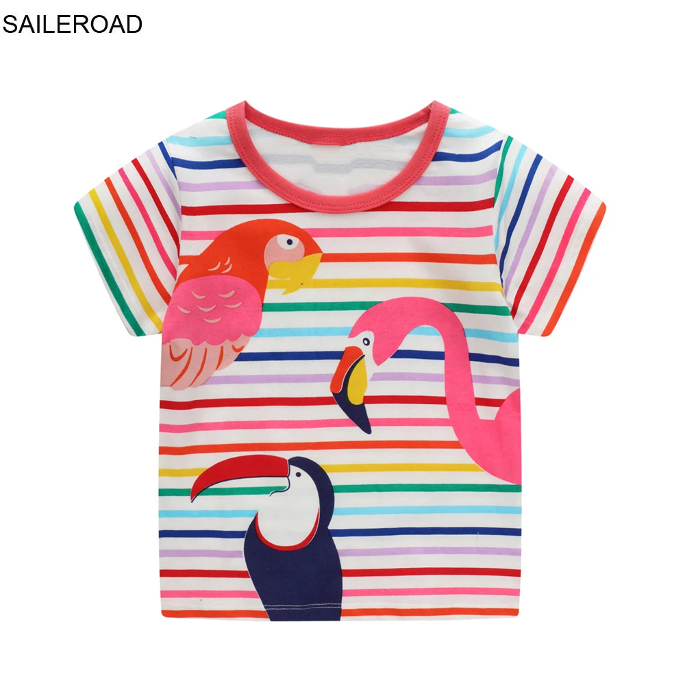 SAILEROAD/футболка с аппликацией в виде животных и фламинго для девочек хлопковая одежда для малышей футболки для маленьких девочек с изображением попугая детские футболки
