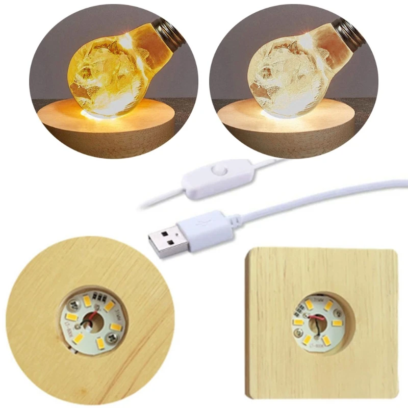 2 предмета Деревянные светодиодный светильник 3D кристаллы Стекло смолы арт экрана базовые украшения ночника подставка для ноутбука