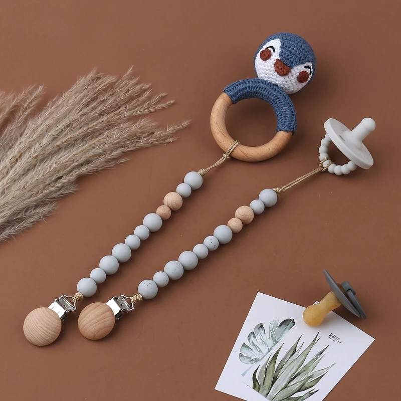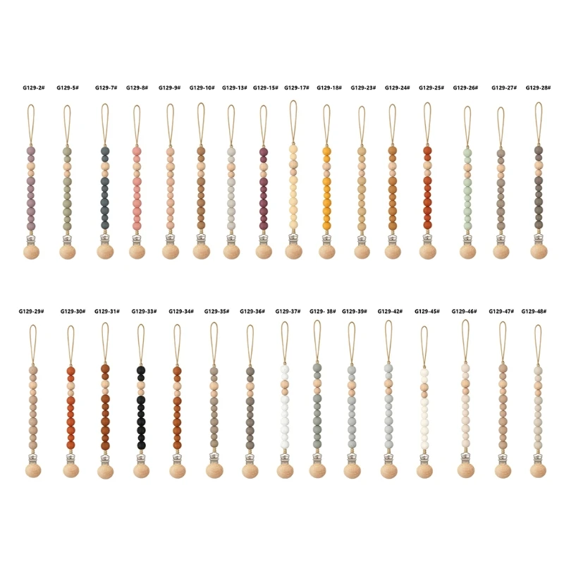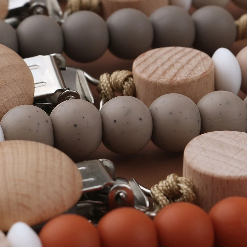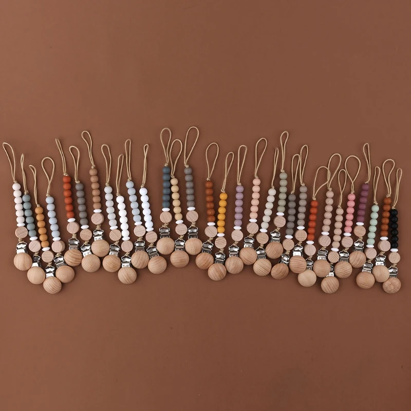 Детские зажимы для соски, без БФА, силиконовые бусины, деревянный зажим, цепочка для соски для новорожденных, Успокаивающая цепочка для соски, зажим для соски, держатель-пустышка