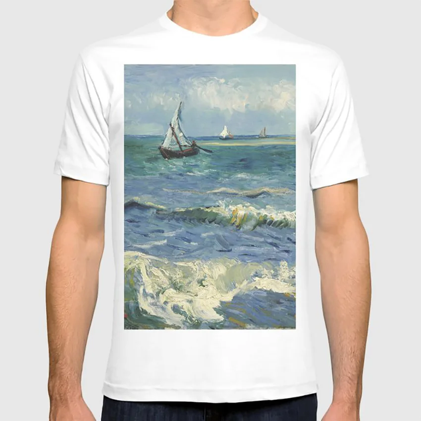 Футболка с изображением Ван Гога, Морского Пейзажа, лодки