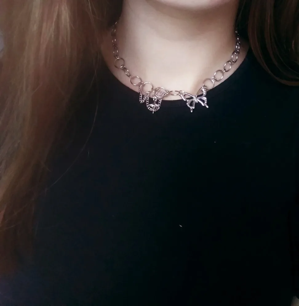 Ожерелье Goth, колье с бабочками, с вырезами, в подарок девушке, цепь колье для ключиц, 2021