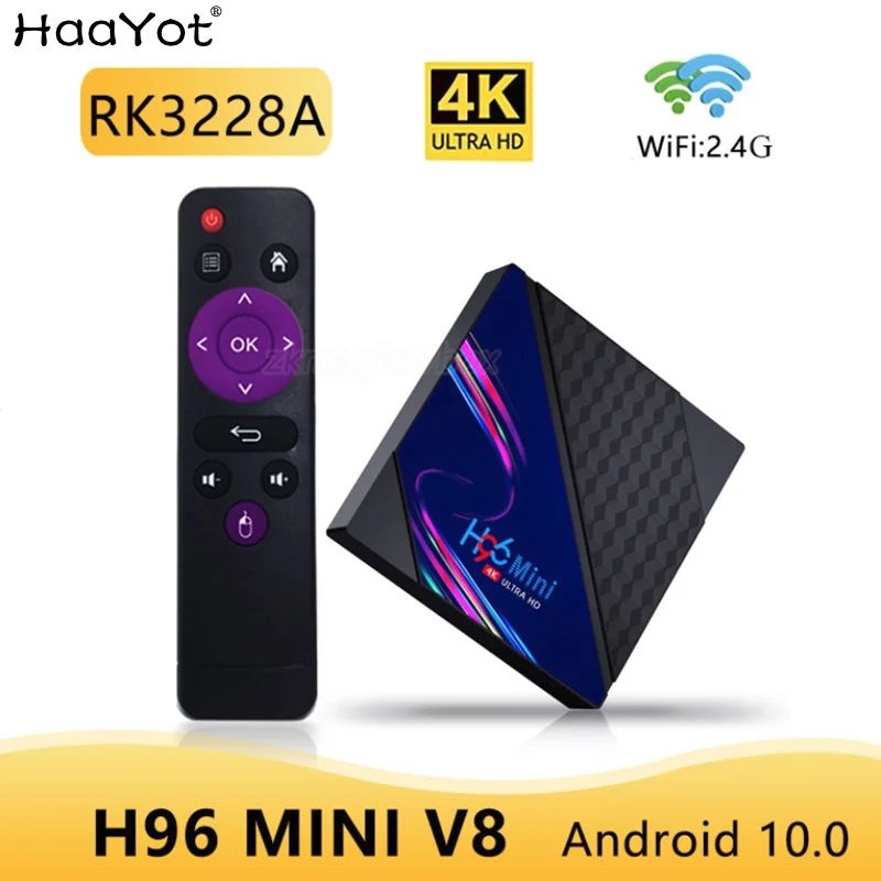 Андроид 10 Smart TV Box H96 мини V8 RK3228A 1 ГБ/2 ГБ 8 ГБ/16 ГБ 2,4 ГГц Wi-Fi Google Play Youtube H96Mini Media Player Декодер каналов кабельного телевидения компьютерной приставки к телевизору