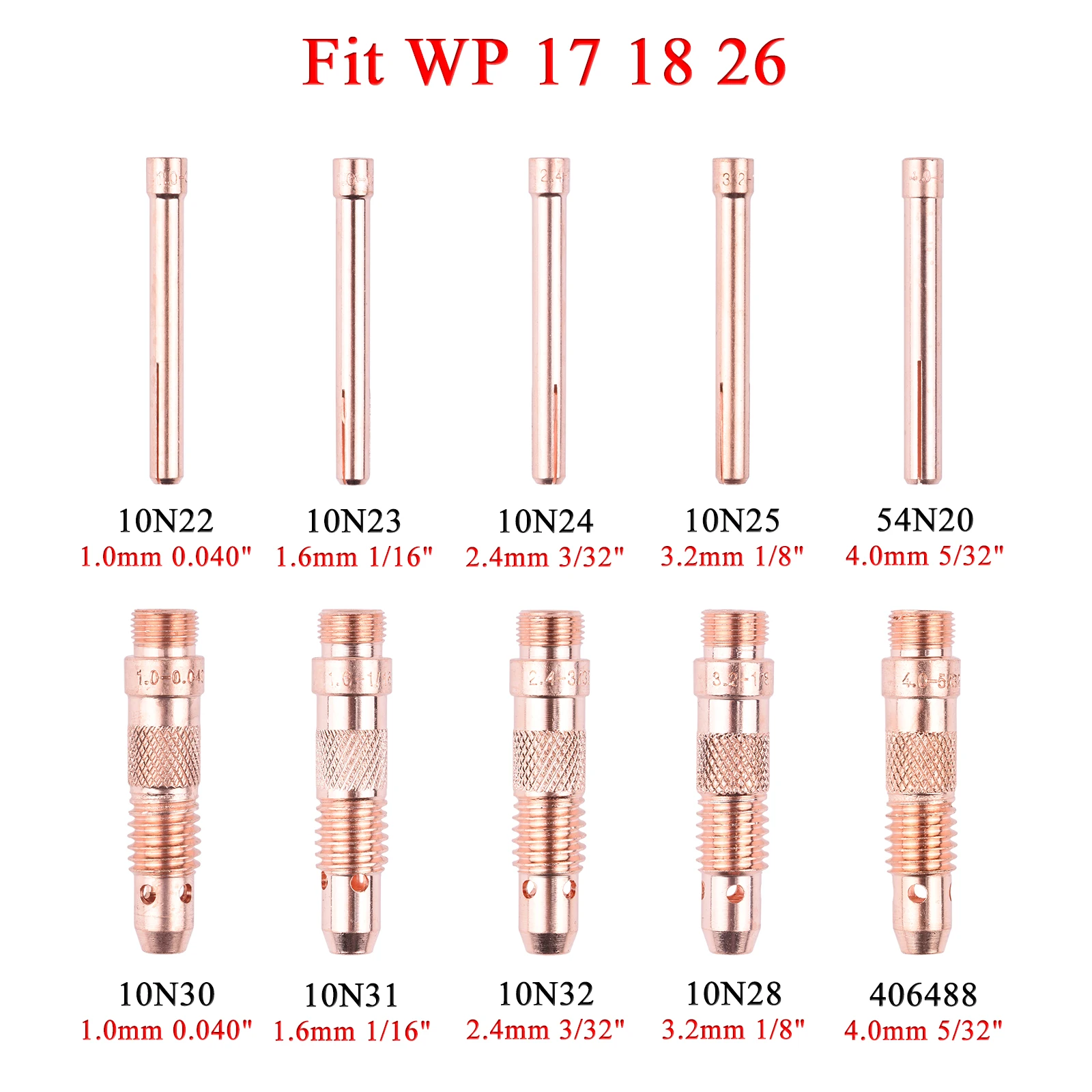 1,01,62,43,24,0 мм TIG цанги тела 10N22 10N23 10N24 10N25 54N20 10N30 10N31 10N32 10N28 406488 для WP17 18 26 фонарь