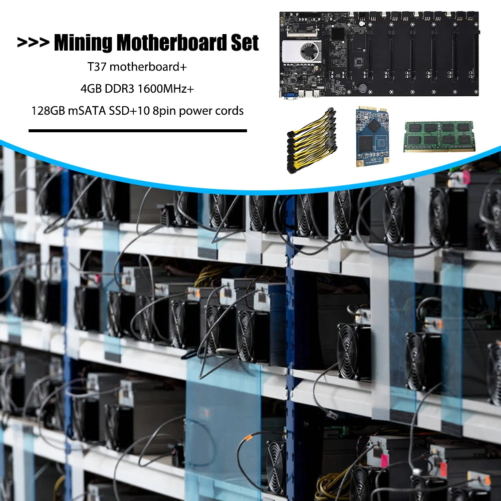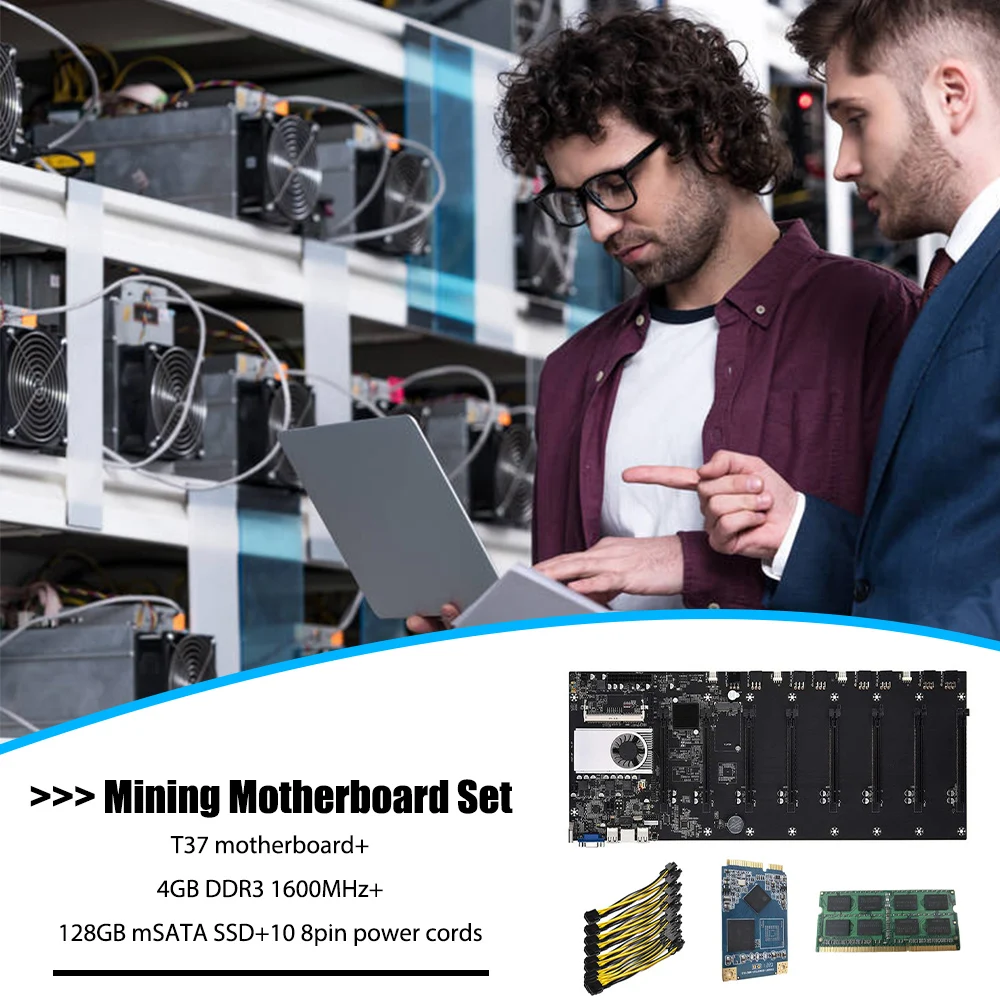 BTC-T37 Riserless добыча материнская плата 8 GPU Bitcoin крипто Эфириума горно-комплект с 4 Гб DDR3 Оперативная память 1037U 128 ГБ mSATA SSD Мощность кабель