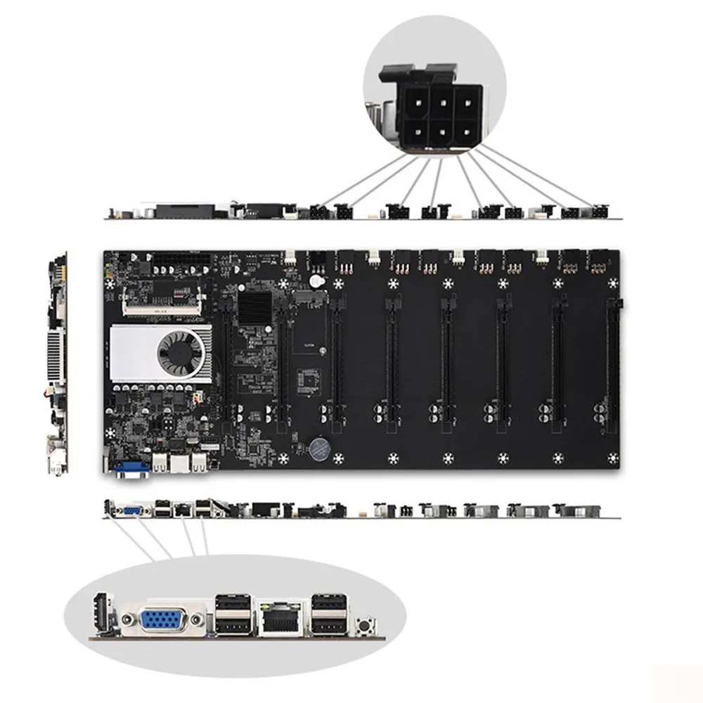 Особенности:1. Слот для памяти, 8 разъемов для видеокарты.2. Высокая производительность вычислений, на 10% выше, чем Материнские платы того же уровня.3. Оснащен Sodimm DDR3 слотом памяти, 16*6pin PCI-E X16 разъем питания, значительно повышает производительность материнской платы.4. Конденсатор стабилизации напряжения может обеспечить стабильное напряжение для вашего оборудования электропитания.5. Он может обеспечить тихую производительность, низкое энергопотребление, меньшее количество тепла, энергосбережение и безопасное использование.Материнская плата:Модель: BTC-T37Процессор: intel®Celeron®CPU 1037U @ 1,80 ГГцПамять: 1 * DDR3 sodimm разъем, поддержка 1066/1333/1600 МГцХранение: 1 * SATA3.0 + 1 * SATA2.0 + 1 * m SATA2.0USB: 4 * USB2.0 + 2 * передний USB2.0 pinМногофункциональная карта: ITE IT8772EРасширяемый порт: 8 * PCIE16X1 * SATA3.0 + 1 * SATA2.0 + 1 * mSATA2.0 интерфейс жесткого дискаБлок питания: ATX24 PINРазмер: 470 мм * 195 ммЦвет: черныйMSATA SSD:Емкость: 128 ГБРазмер: 50х30х3 ммТребования: DC3.3V / 1AПрименение: рабочий стол, ноутбук, сервер, точность добычиСостояние: абсолютно новый, различные брендыЦвет: Случайная ДоставкаRAM:Чип: SEC / HY / MT или другое (отправлено случайным образом)Тип: без ECC, без REG (память ноутбука)Частота: DDR3 1600 МГц или DDR3L (отправлено случайным образом)Емкость: 4 ГБ DDR3 1600 МГцЦвет: Случайная ДоставкаКабель питания:Калибр провода: 18 AWGДлина кабеля: 10,23 дюйма/250 мм8-pin женский конец используется для подключения к разъему питания источника питания.Два 8-pin (6 + 2) Мужской заканчивается подключаются к видеокарта и добыча материнская плата.Дружеское напоминание:Проверьте, полностью ли кабель совместим с вашим устройством. Если вы не уверены, пожалуйста, немедленно свяжитесь с нами перед оформлением заказа.Количество: 10 шт.Примечания:1. Допускается погрешность в 0-1 дюйм из-за ручного измерения. Спасибо за понимание.2. Мониторы не калибруются так же, цвет товара, отображаемый на фотографиях, может немного отличаться от фактического товара.3. Из-за различных производственных партий цвета DDR3 и SSD являются случайными, и функции одинаковые, что не влияет на использование, спасибоУпаковочный лист
