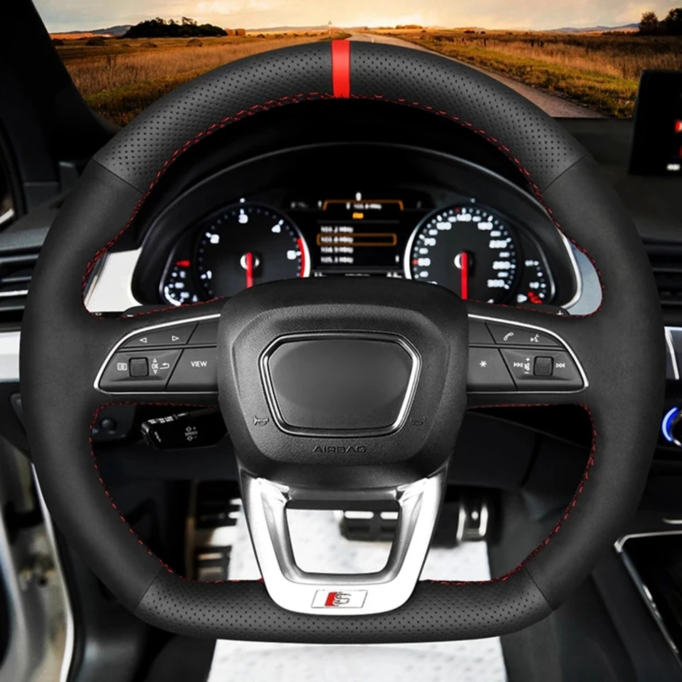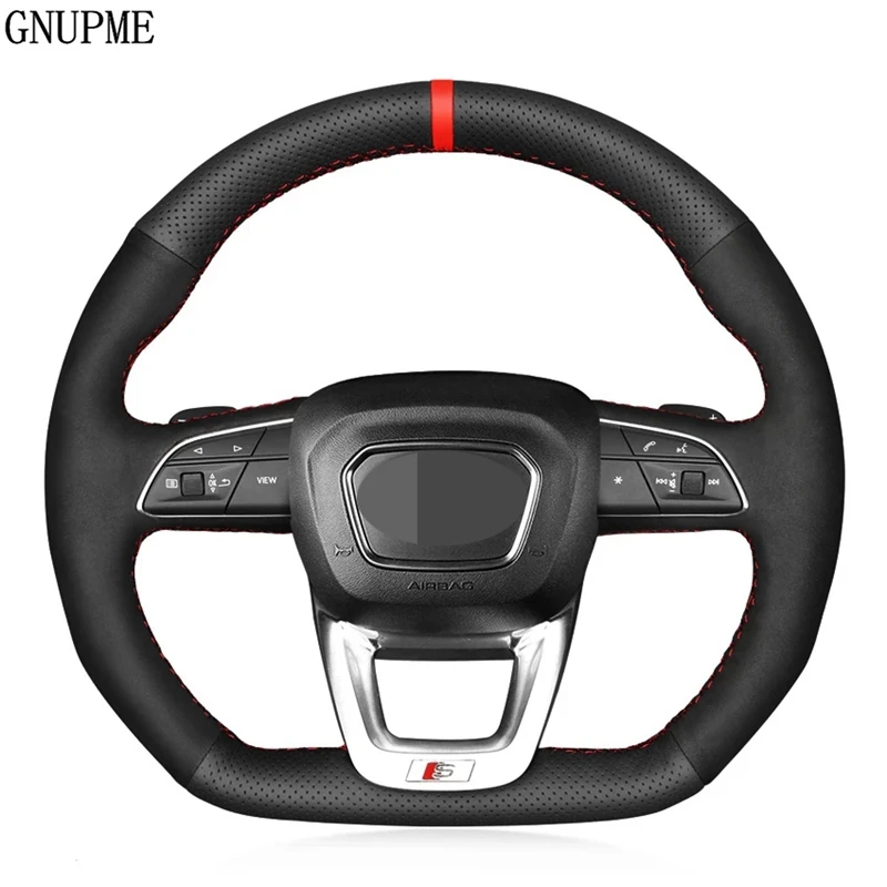 Мягкий черного цвета из натуральной кожи и замши Чехлы рулевого колеса автомобиля для Audi Q3 2018-2019 Q5 (FY) 2017-2019 Q7 (4 м) 2015-2019 Q8