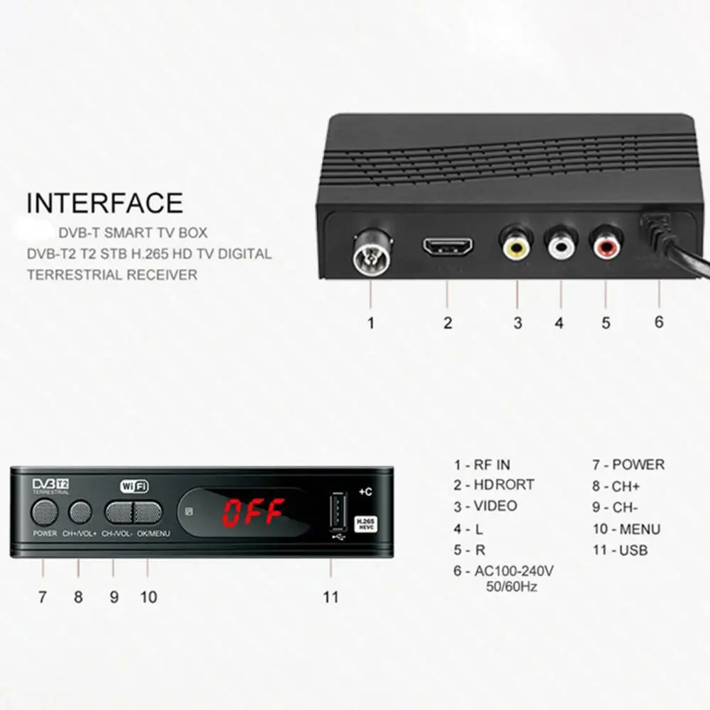 Описание:Простая конструкция позволяет легко установить и использовать ТВ-приставка.С высокой четкостью ТВ-приставка имеет высокую производительность.Изготовлено из высококачественного пластика, ТВ-приставка надежная и долговечная.Длина в ТВ Декодер каналов кабельного телевидения находится на высоком каблуке 12 см, ширина 6,4 см и рост приведены исключительно в 2,9 см.Подходит для дома, офиса и гостиной и т. д. Название товара: ТВ-приставкаМатериал: пластикБатареи: пульт дистанционного управления: 2 батарейки ААА (не входят в комплект)Разрешение видео: 480i/480p/576p/576i/720p/1080p/1080iТип интерфейса: USB2.0Языки: русский, английский, чешский, французский, вьетнамский, индонезийский, немецкий, итальянский, польский, тайский, персидскийРабочая частота: VHF: 174MHz-230MHz, UHF: 470MHz-862MHzВход: 100-240VACТип вилки: штепсельная вилка европейского стандартаЦП: MT2203ПЗУ: 500 ГбДекодер: H.265HEVC/H.264/H.263/MPEG-4/MPEG-2/AVS +/VC1Тюнер: TC6800Аудио декодер: MPEG-1/2 слоя i/ii/iiiРазмер: 12 см x 6,4 см x 2,9 см/4.72inx2.52inx1.14in Примечания:Благодаря светильник и экрана Цвет Товара может быть s светильник ly отличается из-за характеристик монитора компьютера.Возможны незначительные отклонения в размерах из-за различных измерений вручную.Перед покупкой, пожалуйста, обратите внимание, чтобы проверить, подходит ли оборудование для местного использования. Устройство может принимать и настраивать только Бесплатные Сигналы на частотах h2.65 и ниже и не поддерживает аудио ac3. Некоторые итальянские и испанские каналы недоступны. Посылка включает в себя:ТВ-приставка-1 шт.1 X av-кабель1 х пульт дистанционного управления1 X Руководство пользователя