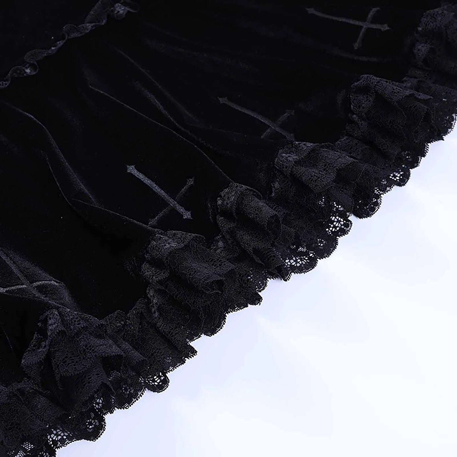 Женская летняя юбка с вышивкой, замшевая черная кружевная Лоскутная панк-юбка