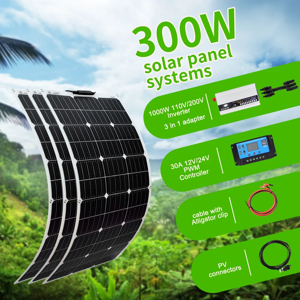 Комплект гибкой солнечной панели, 18 в, 100 Вт, 200 Вт, 300 Вт, 400 Вт для аккумулятора 12 В, 24 В, для автомобиля, RV, дома, на открытом воздухе, зарядка