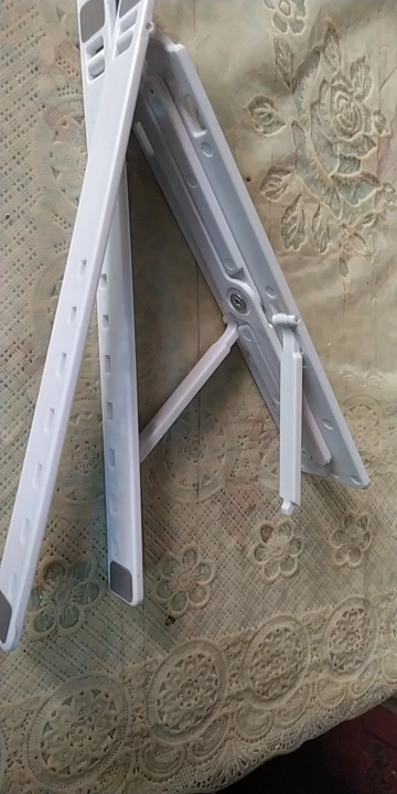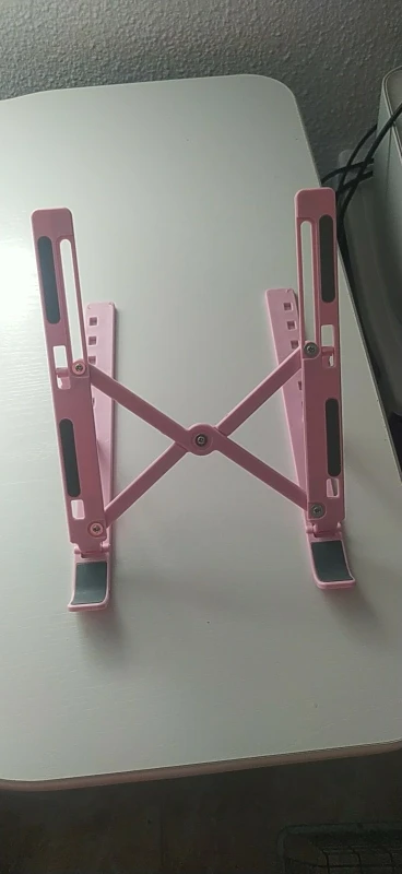 Es de plástico, no de metal. Tamaño bastante pequeño para Mac de 15', se tambalea un poco. Si se tumba demasiado, el ordenador se vuelca.