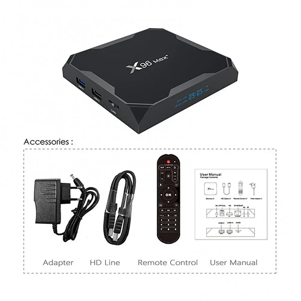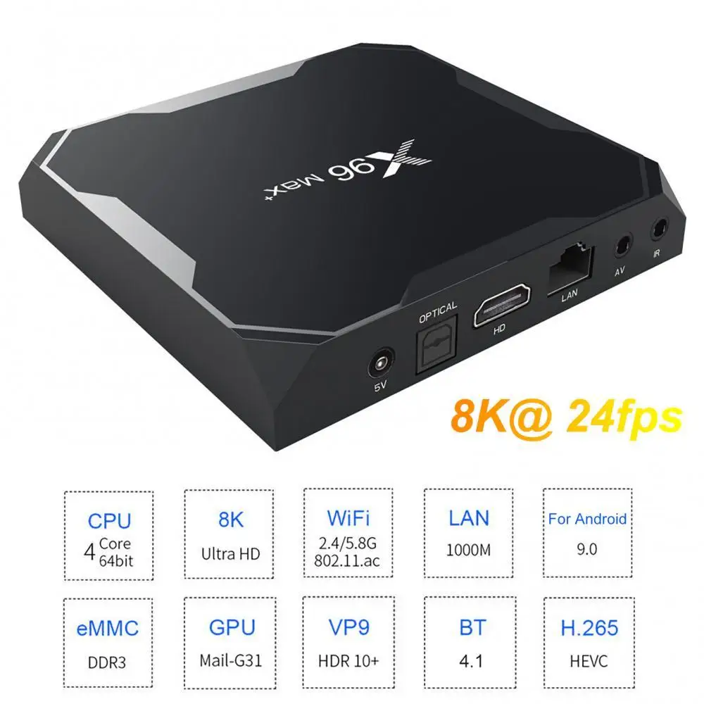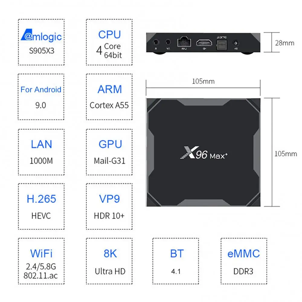 Смарт ТВ-приставка X96 Max Plus, Android 90, высокое разрешение, 8K, 4 ГБ, 64 ГБ, 32 ГБ, четырехъядерный Amlogic S905X3, ТВ-приставка для android