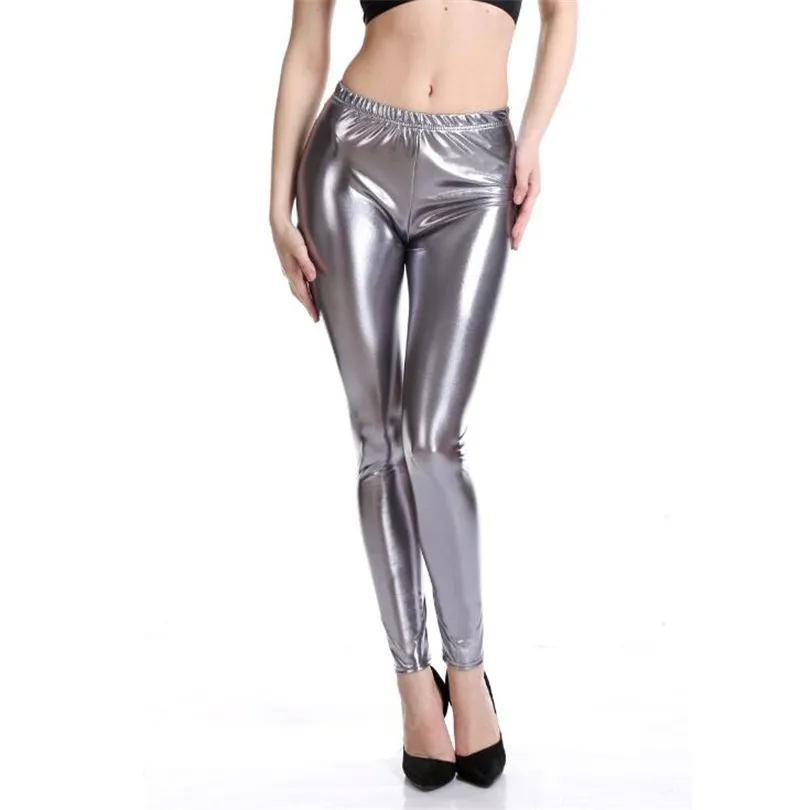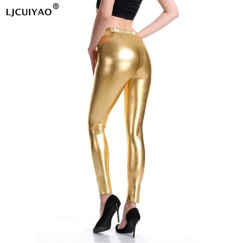 LJCUIYAO обтягивающие золотые блестящие металлические голографические леггинсы панк-рок штаны с эффектом пуш-ап яркие блестящие штаны для фитнеса клуба из полиэстера