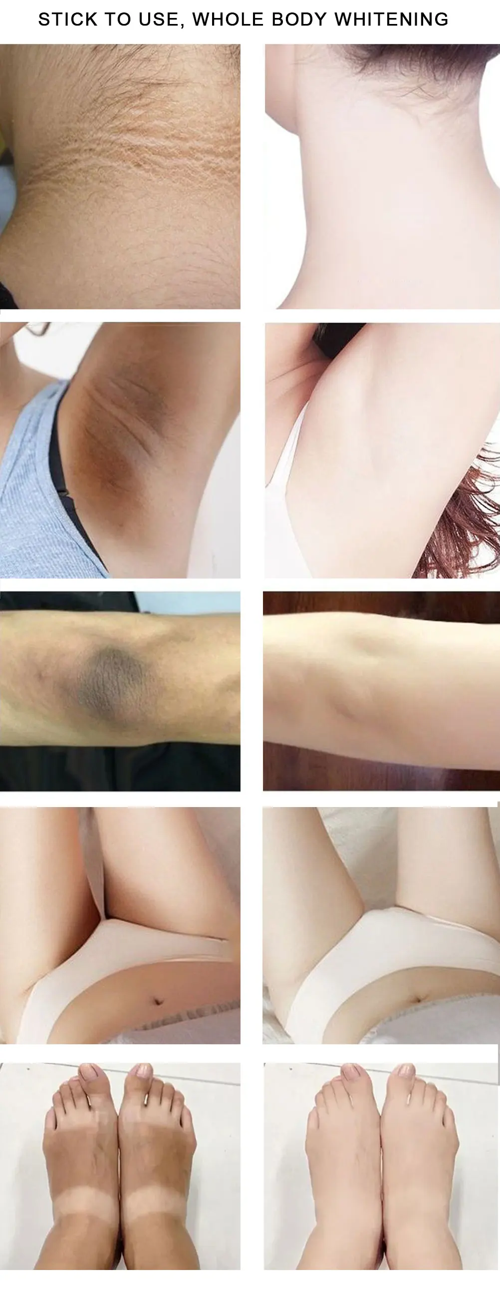 Шаг 1.сделайте хорошую работу по очистке перед использованием, эффект будет лучше после купания.Шаг 2. Возьмите соответствующее количество и нанесите на области, которые нуждаются в отбеливании и ремонте.Шаг 3. Мягко массируйте круговым движением до полного впитывания кожи.