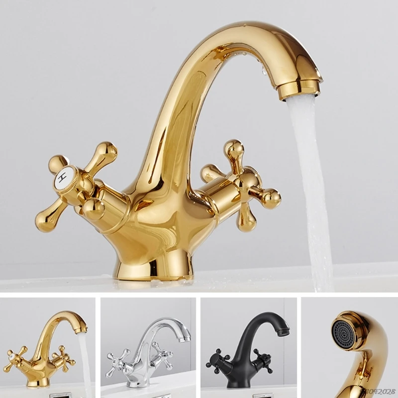 Золотистый смеситель с двойной ручкой, античный кран для ванной, тв...