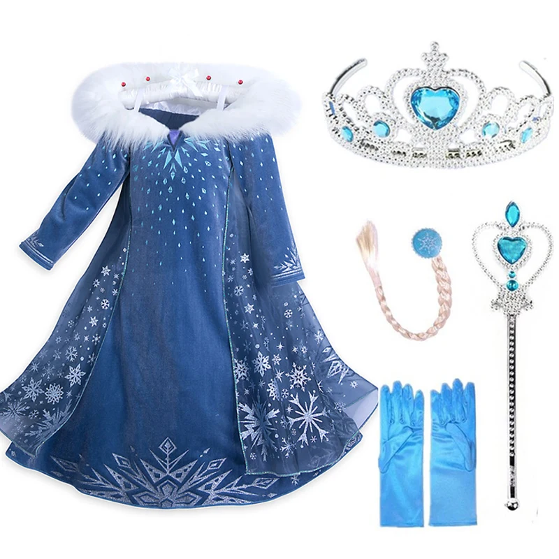 Платье принцессы Эльзы для девочек, праздничная одежда для косплевечерние, Детский костюм с короной и надписью Холодное сердце из мультфильма Queen, подарок
