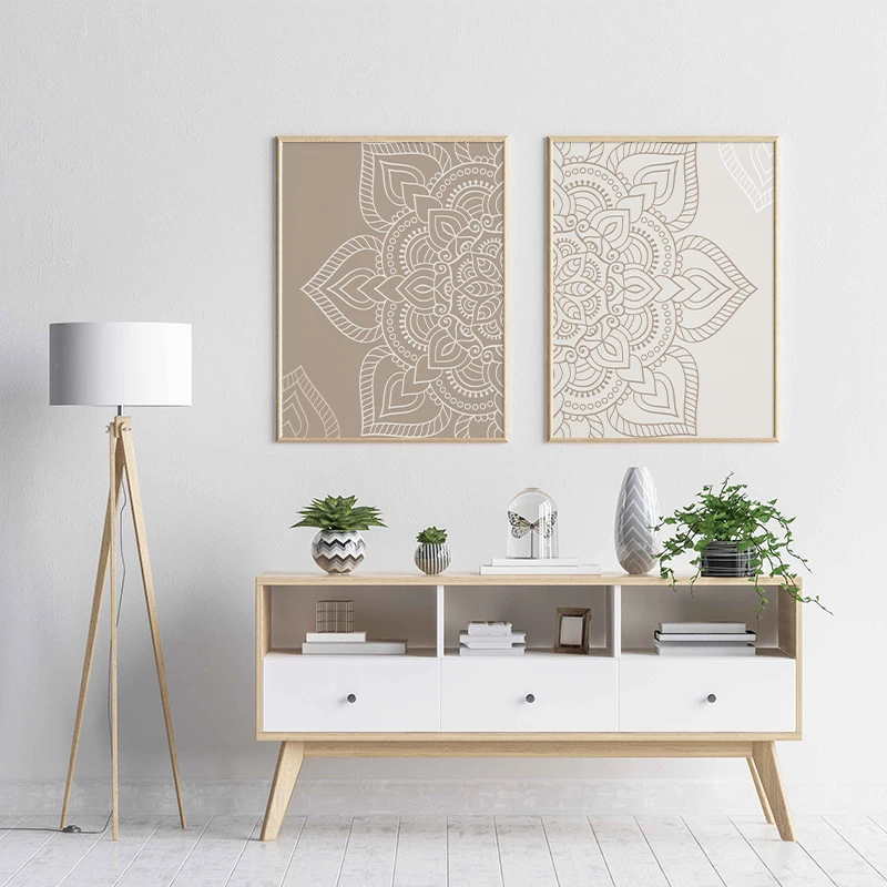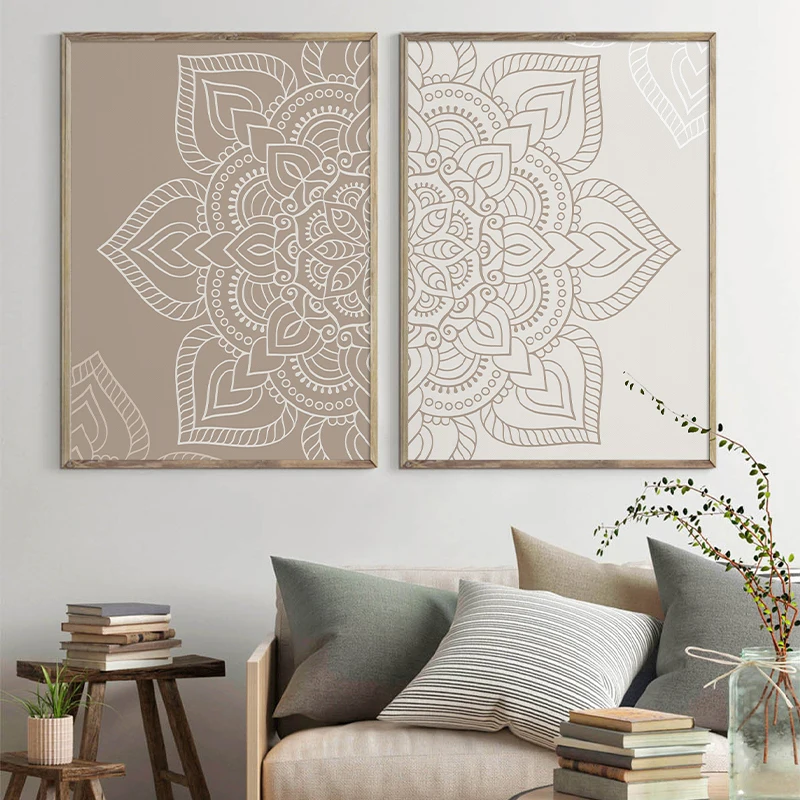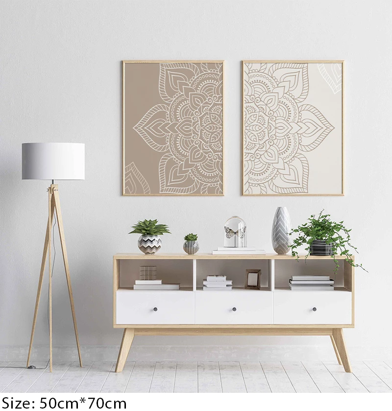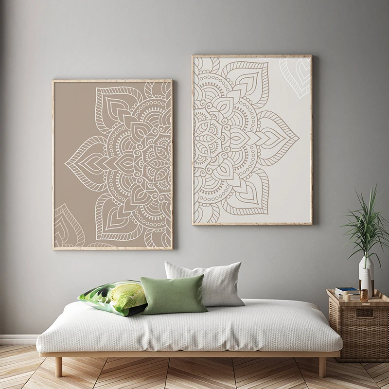 Мандала Цветочный бежевый нейтральный Цвет Бохо стены искусства Печать холст Картина постер картина дзен, йога гостиная домашний декор интерьера