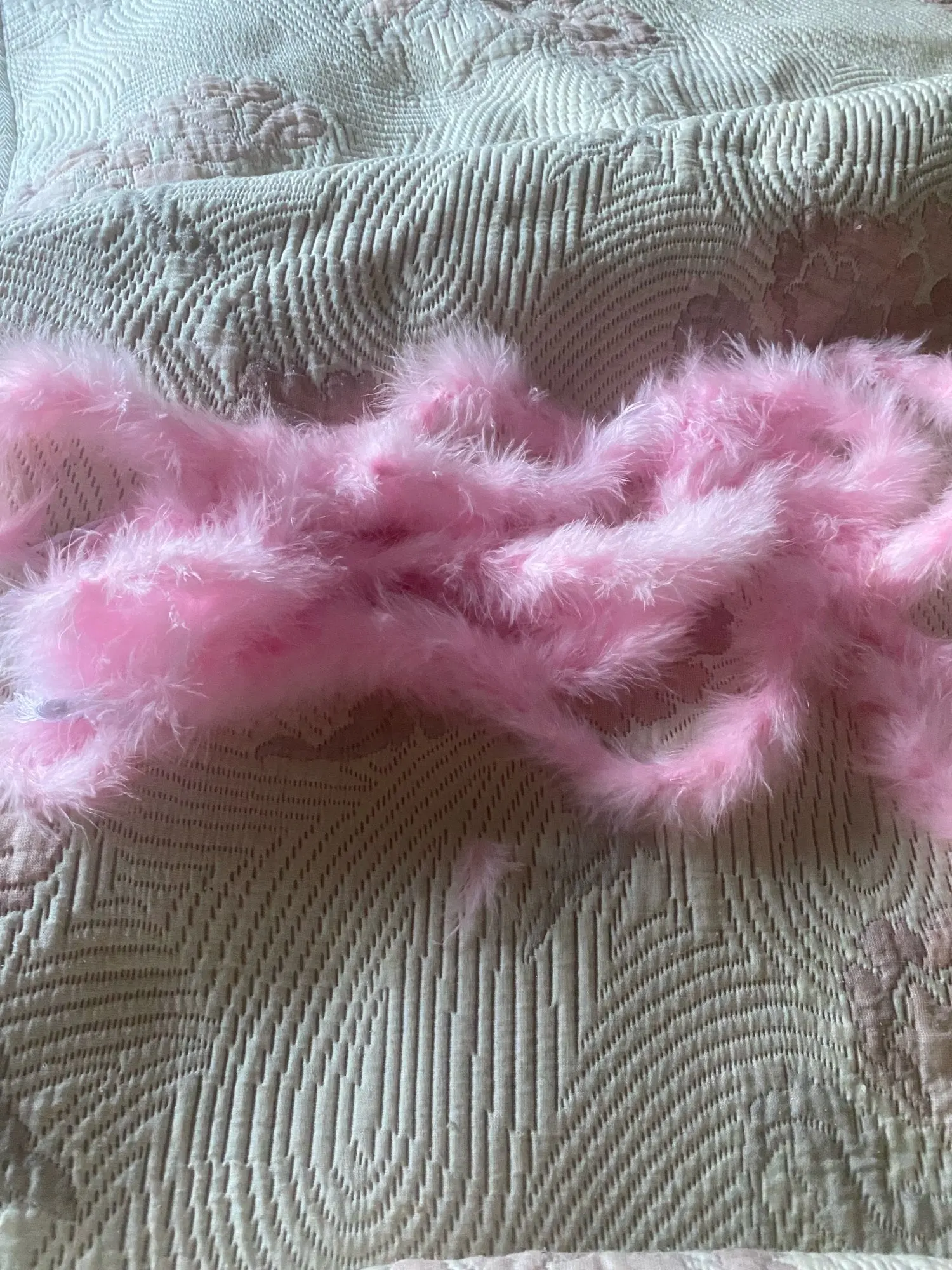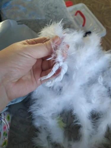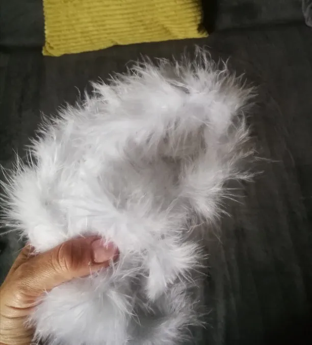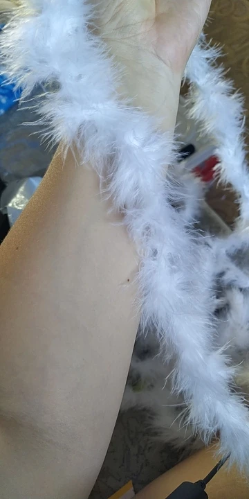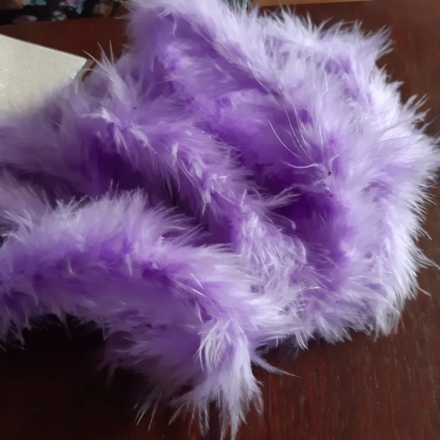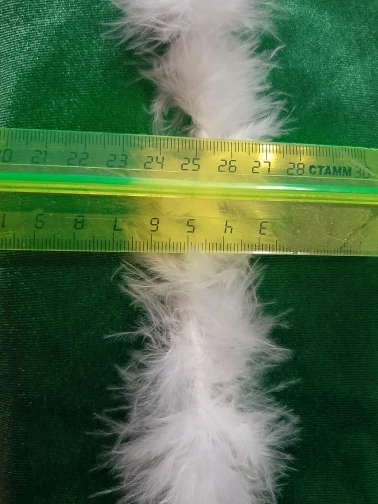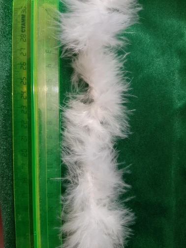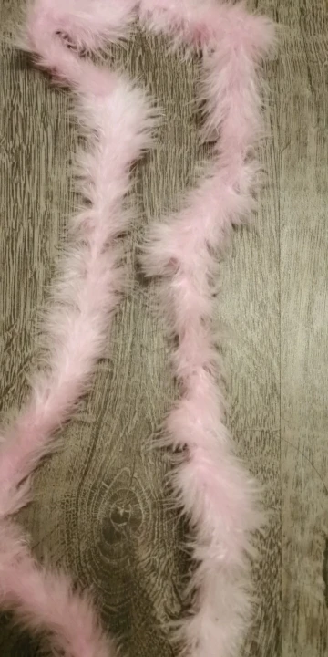 Чуть-чуть отличается цвет - более розовый, чем на картинке, меньше сиреневого оттенка. Не очень пушистый пух, тоньше, чем на картинке. Длинна - ровно 2 м, но первый сантиметр тесьмы без пуха. То есть тесьма с пухом - 1,99 м. Доставка до почтового отделения Москвы в сборной посылке - 16 дней с момента оплаты. В общем, товар недорогой и соответствует своей невысокой цене. Рекомендую всем, кому не важны перечисленные нюансы.