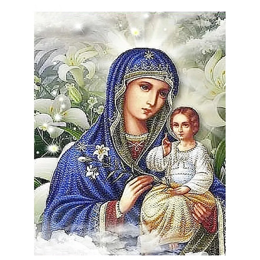 Алмазная живопись ручной работы уникально, картина 5D сделай сам с религиозным мотивом, вышивка крестиком, мозаика с кристаллами 5D, Дева Мария, лилия