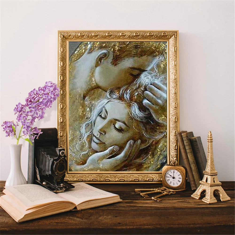 Холст Размер полный квадратКруглый Алмаз Картина пара 5D DIY Алмазная вышивка мозаичный портрет ручной работы подарок