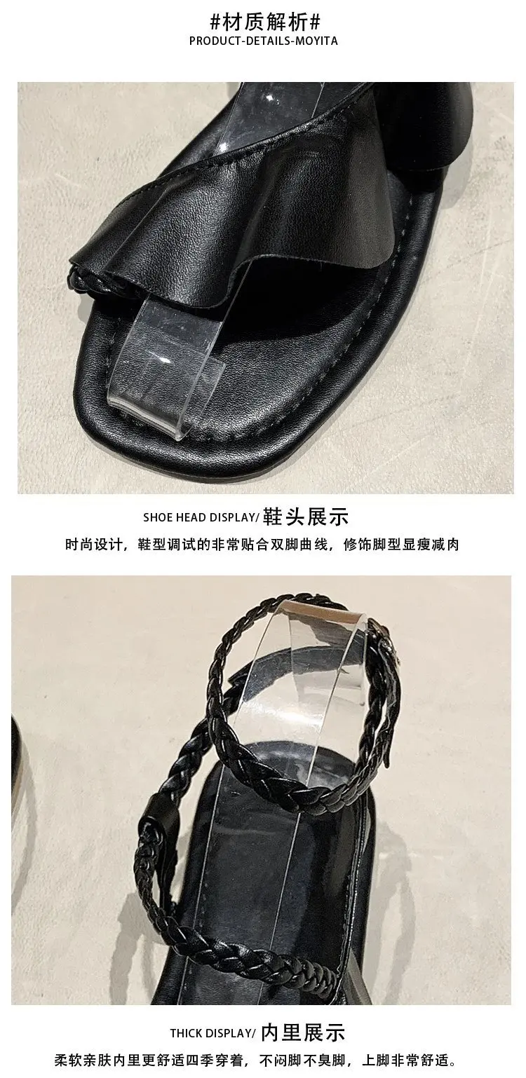 Босоножки YUKE женские на шнуровке, легкие модные сандалии с открытым носком на квадратном каблуке, удобная повседневная нескользящая обувь розового цвета, лето