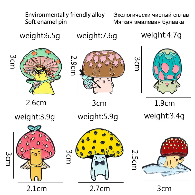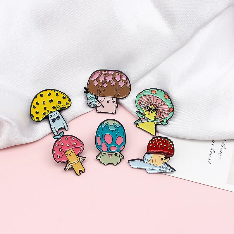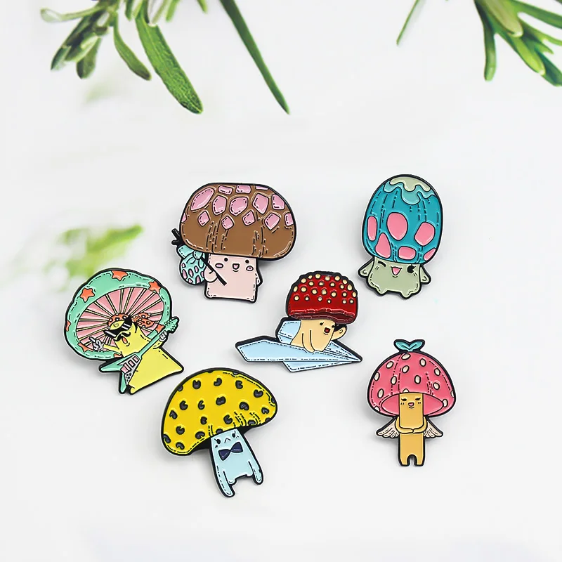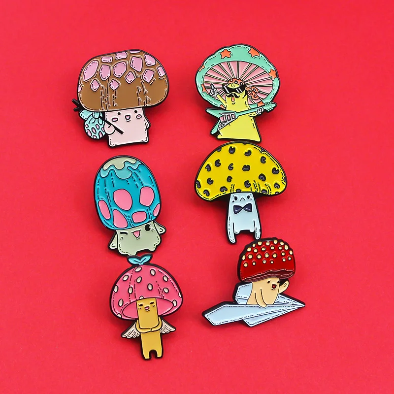 Мультяшные эмалевые булавки в виде грибов, забавная брошь в виде рок, певицы, гитары, ангела, ребенка, беглецов, цветное растение, значок, ювелирное изделие, подарок для детей, друзей