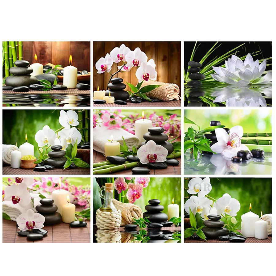 5D алмазная живопись, Орхидея, камень, свечи, Алмазная мозаика сделай сам, полностью круглая вышивка, цветы, вышивка крестиком стразы, домашний декор