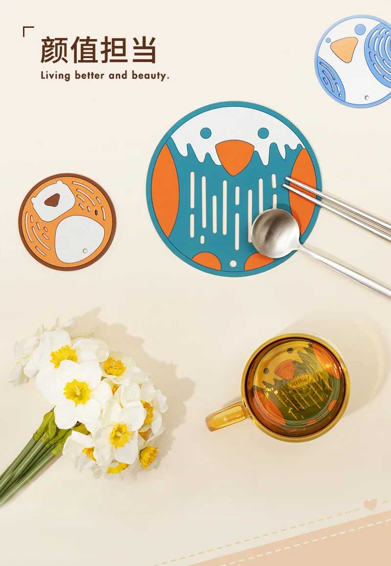 Мультяшный коврик для чашки Нескользящие силиконовые подставки терм...