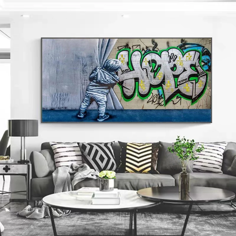 За занавеской картины на холсте граффити уличное искусство Граффити Бэнкси Искусство граффити картины на стену для домашнего декора (без рамки)