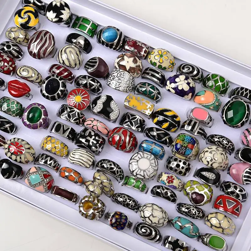 50 шт.лот модные ювелирные кольца из нержавеющей стали для женщин и...