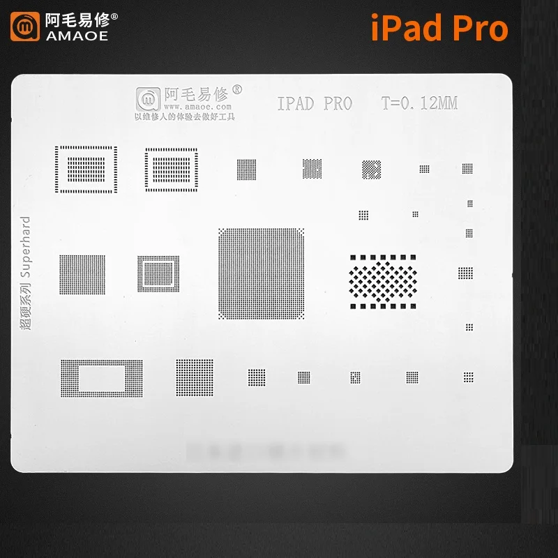 Amao iPad Pro трафарет для A1673 A1674 A1675 BGA CPU RAM Wifi Nand flash Power Audio IC Reballing Pin нагревательный шаблон 0,12 мм толщина
