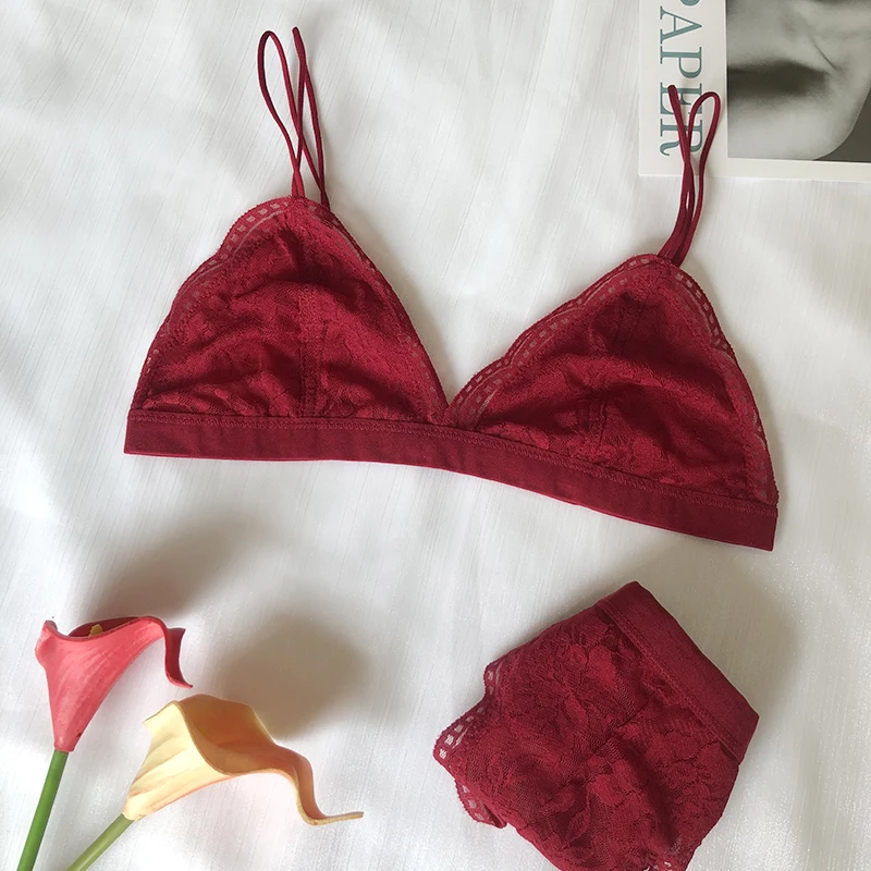 Комплект нижнего белья женский, кружевной, без подкладки, наборы бюстгальтер + трусы