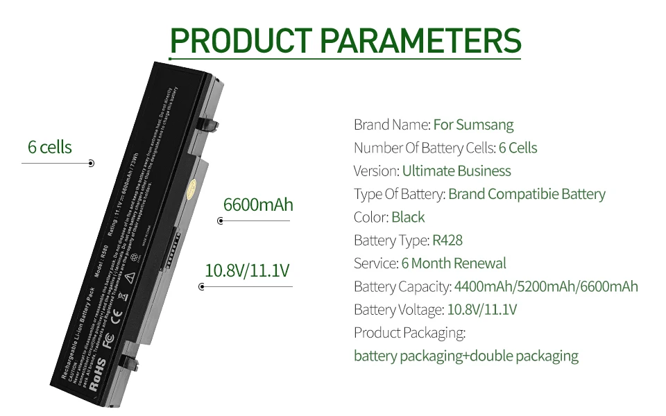 Новый аккумулятор для ноутбука Samsung AA-PB9NS6B, AA-PB9NC6B, PL9NC6W, NP350V5C, 355V5C, np300v5a, NP550P7C, RV508, R428, R528, R460, R580, 6 ячеек