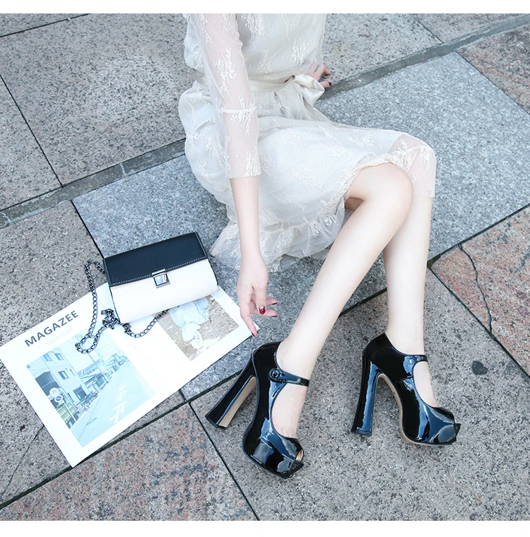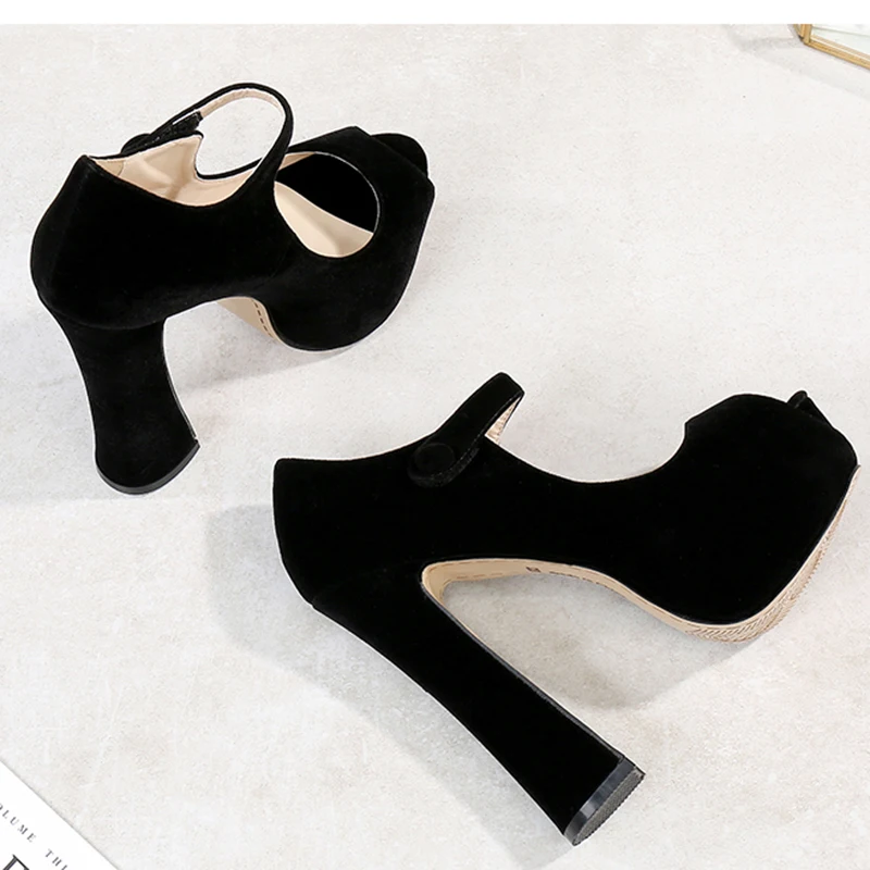 Туфли на высоком каблуке 2021 сезон весна-лето Новое Открытое платье с пряжкой; Большие размеры с острым носком Кеды женские с открытым Босоножки с открытым носком