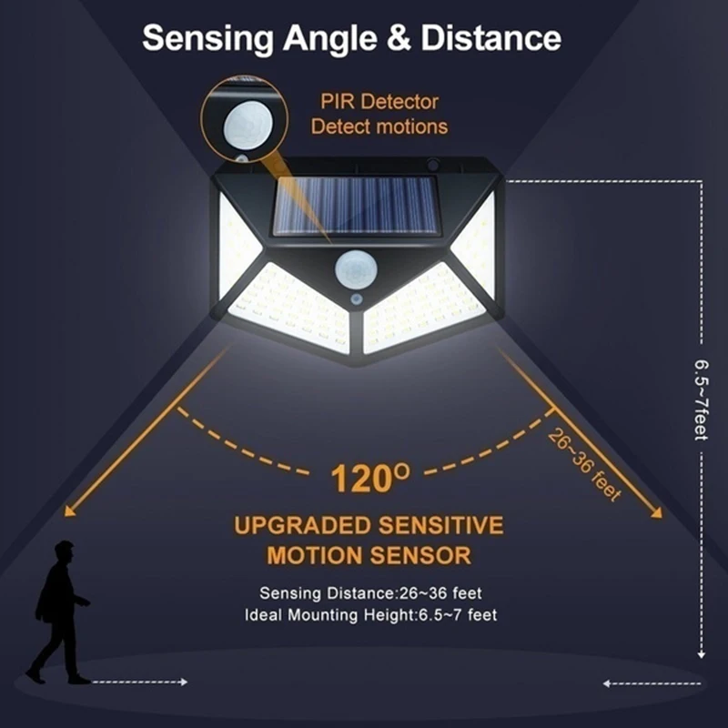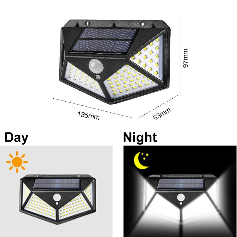 Солнечный садовый светодиодный светильник 100, светодиодный датчик движения, водонепроницаемый уличный настенный светильник для дорожек, улицы, балкона, патио
