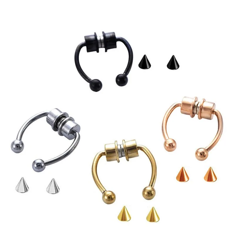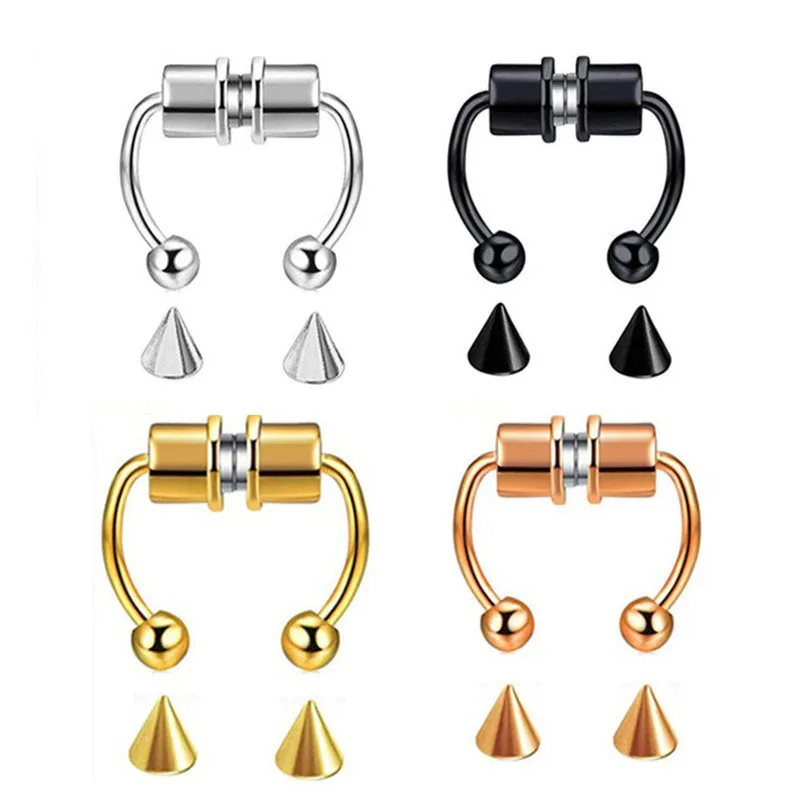 Кольцо в нос, из нержавеющей стали, с подковой, магнитное кольцо в ...