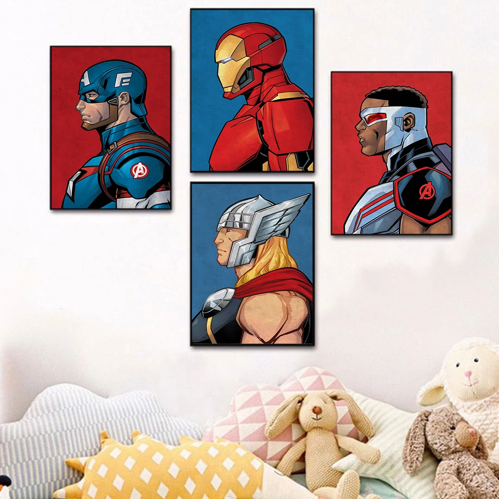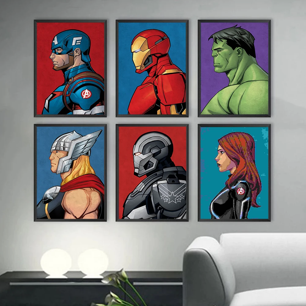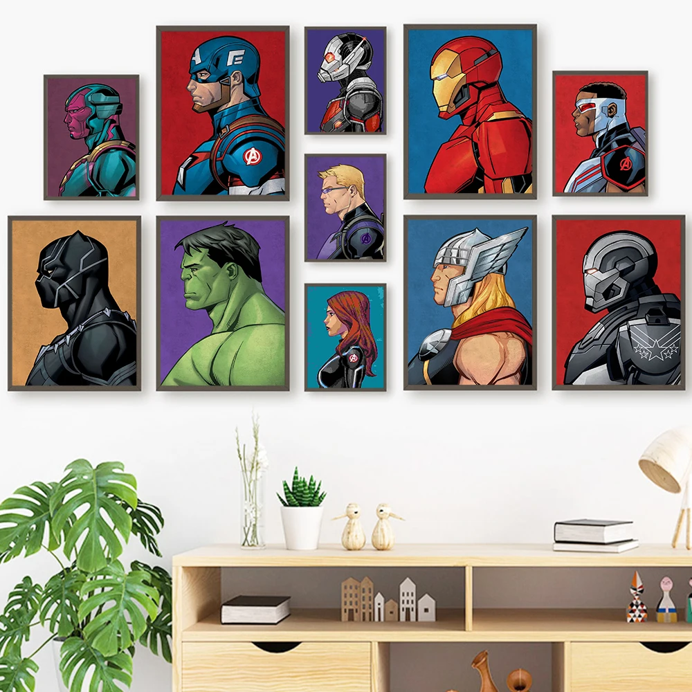 Профиль супергероя Marvel, Аватар, Картина на холсте, Мстители, Человек-паук, железный человек, Халк, HD, настенные принты, постер для дома, детской комнаты, цветной декор