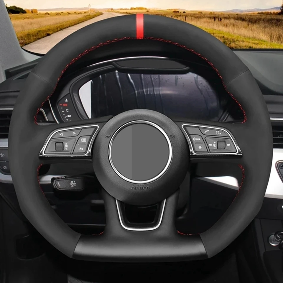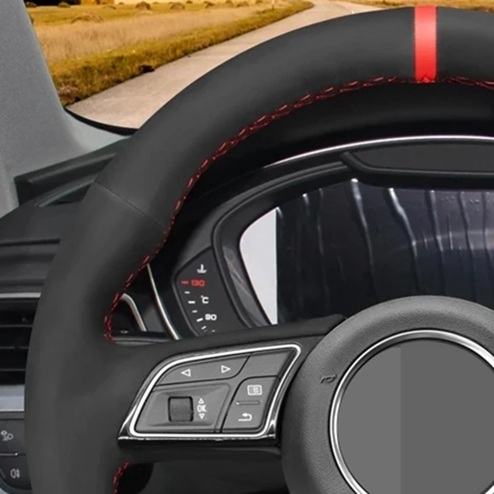 Мягкая черная замша красный маркер чехол рулевого колеса автомобиля...