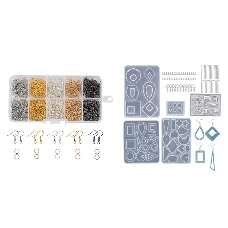 1150 шт 5 цветов открытые кольца прыжок и крючки для сережек Набор для создания украшений и 1 набор серьги смолы пресс-формы