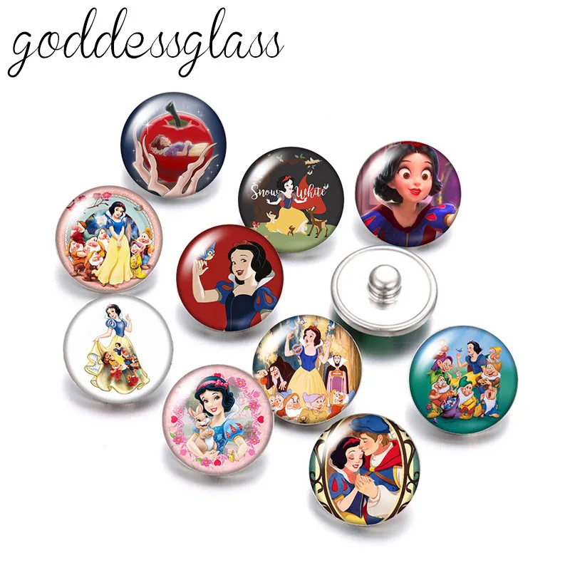 Disney чехлы-накладки "Принцесса", "Белоснежка", "семь гномов 10 шт. круглый фото стекло 18 мм кнопки для 18 мм Оснастки браслеты ювелирные изделия оптом