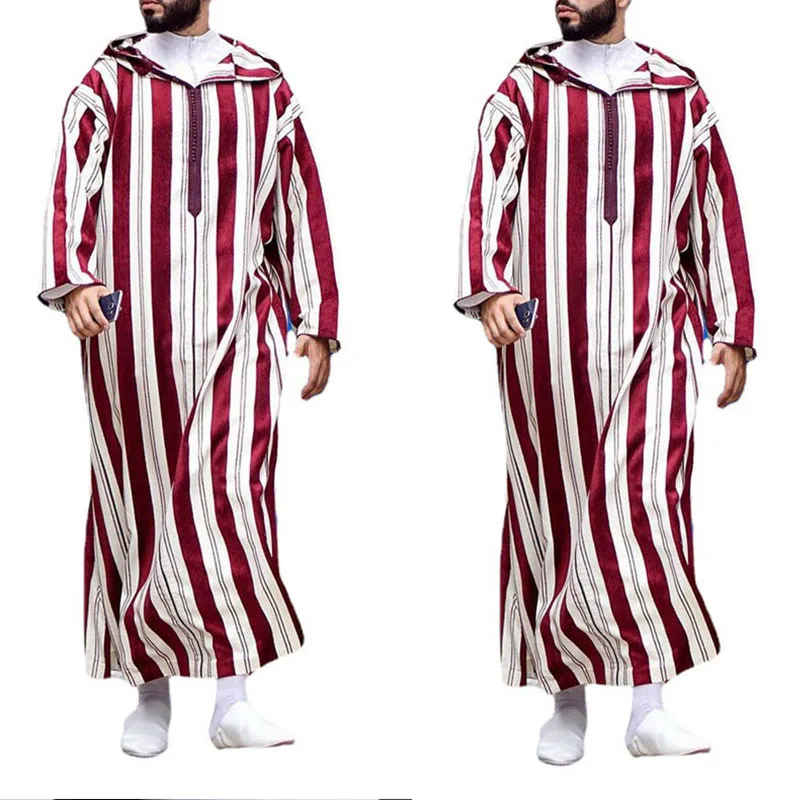 Мусульманская одежда Jubba Thobe Мужская толстовка Рамадан весна осень абайя Дубай Турция Исламская одежда мужская Повседневная Свободная красная полоса