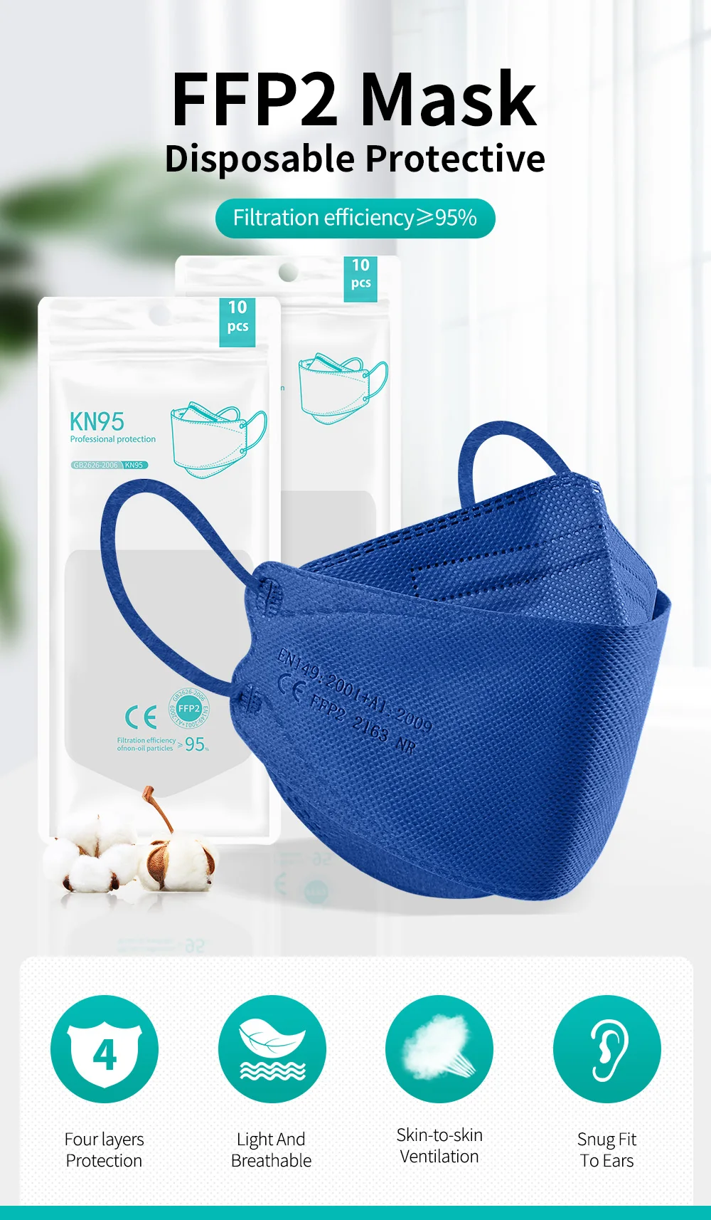 Маска для рыбы KN95 Ffp2, 100 шт., маски fpp2, одноразовые гигиенич...