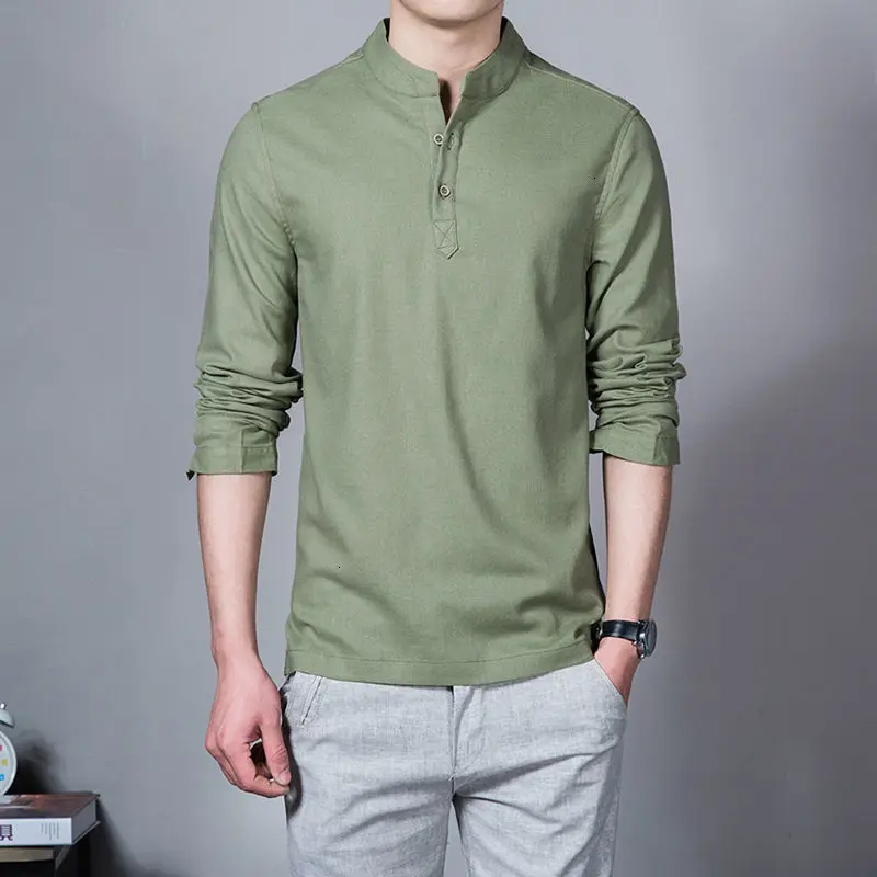 Мужская одежда 2021 Мужская льняная футболка мужская мода стоячий в...