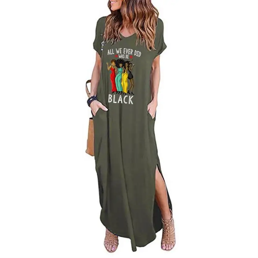Женское летнее длинное платье, черное повседневное свободное платье макси с карманами и коротким рукавом, большие размеры 5XL, 2021