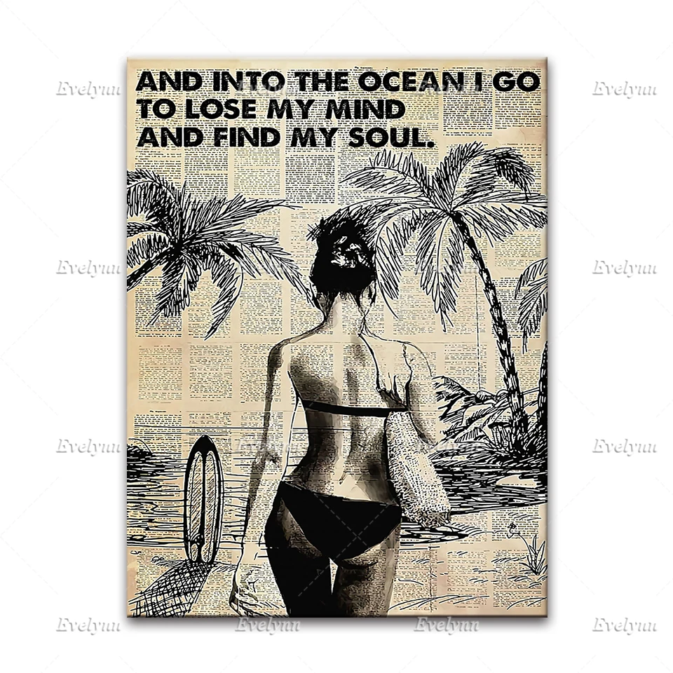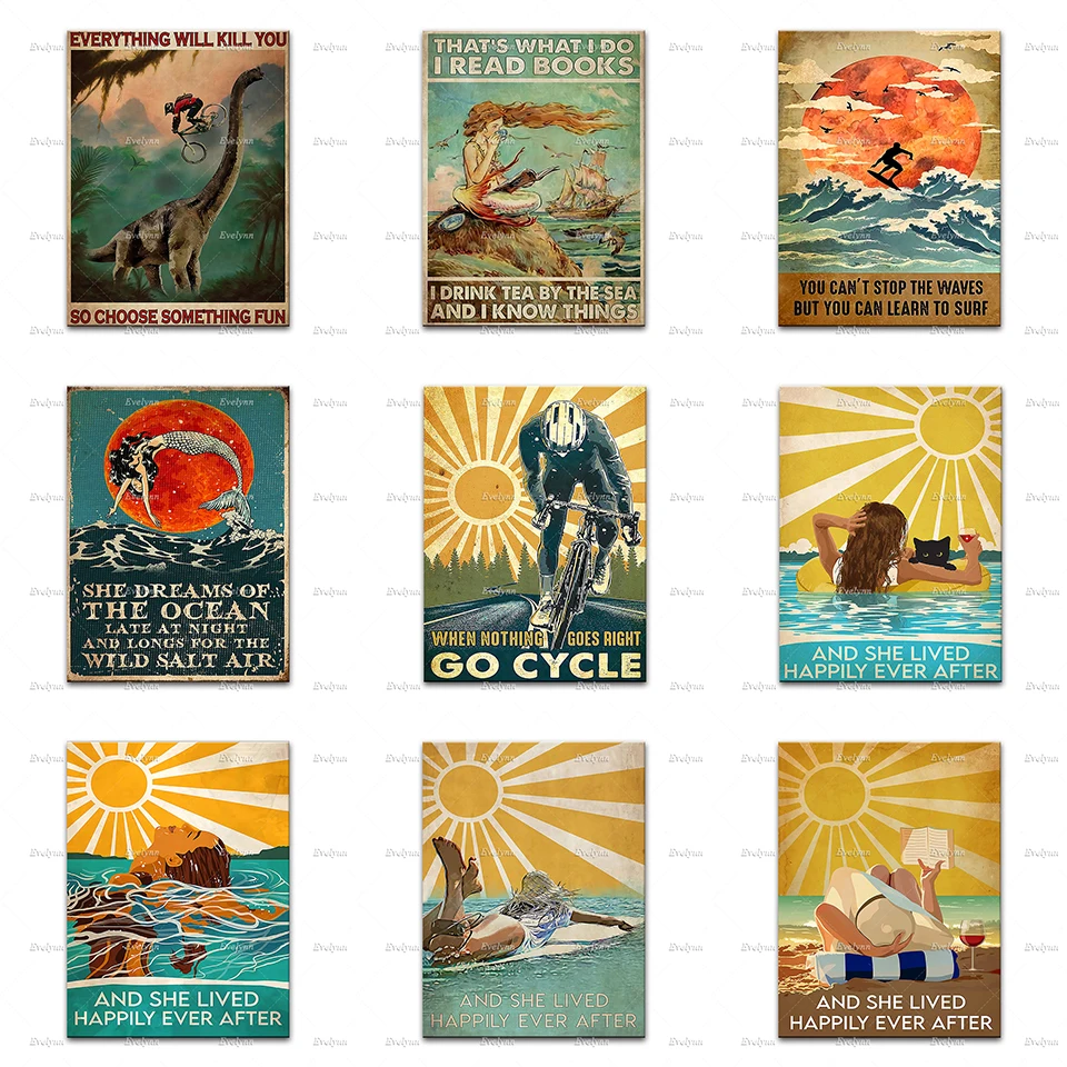 Винтажная модель, для любителей океана, серфинга, девушек, гоночных велосипедов, велосипедов, горных велосипедов, динозавров, настенные художественные принты, домашний декор, холст